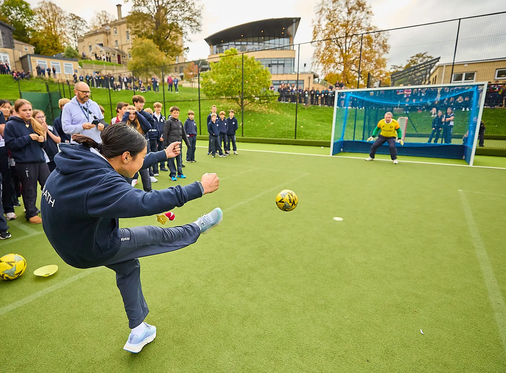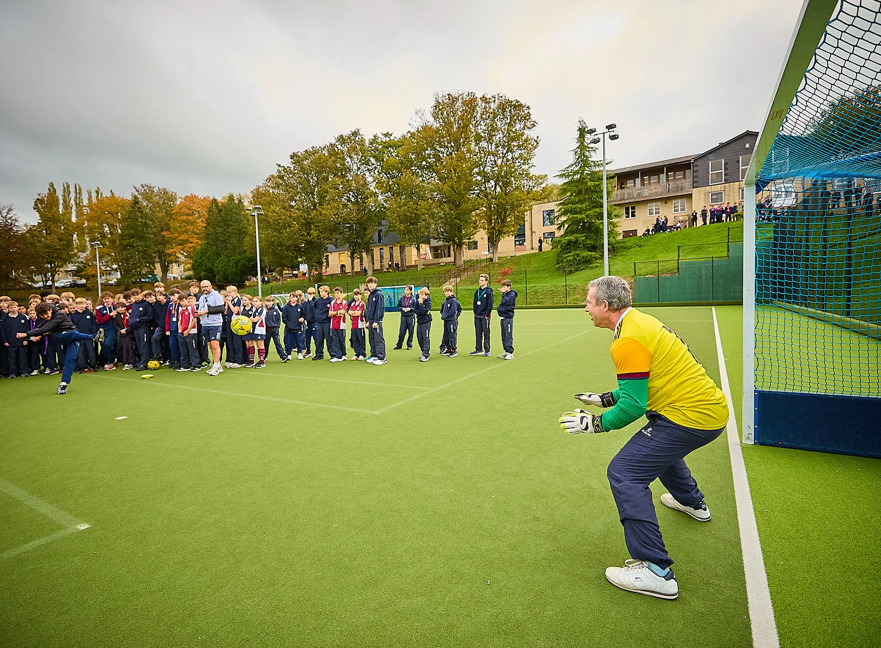 Day Two saw the Junior and Senior Schools join in the celebrations. Pupils and staff cycled, rowed, hiked and ran to reach 1,552 miles.  Activities at the Junior School included quizzes, talent shows, a walk to Sham Castle and carnival-style games, which led to hugely popular challenges being unlocked, including ‘Pie the Teacher’ and a confetti cannon. In Art sessions Senior pupils crafted beautiful Tudor Roses for a collaborative display, and the Headmaster’s Challenge at breaktime saw him face 126 penalties, 20 of which found the net!