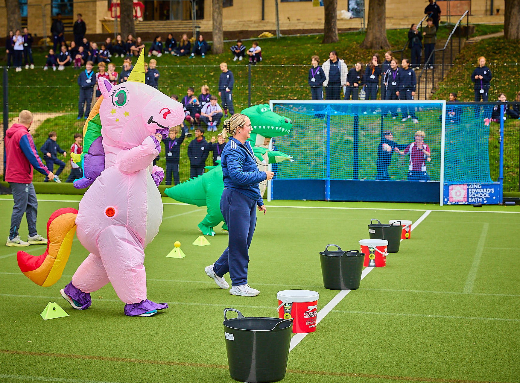A highlight for many was the staff ‘It’s a Knockout’ race on the Astro, where teams from both the Junior and Senior Schools donned inflatable animal costumes to the delight of pupils.  Further entertainment was provided by KES Soul, performing from the balcony of the Wessex Building.
